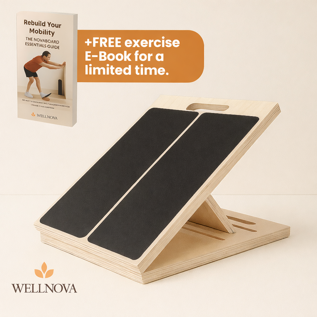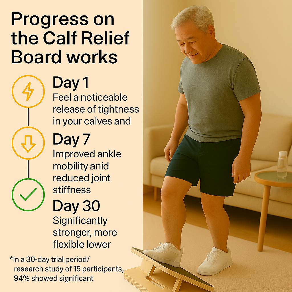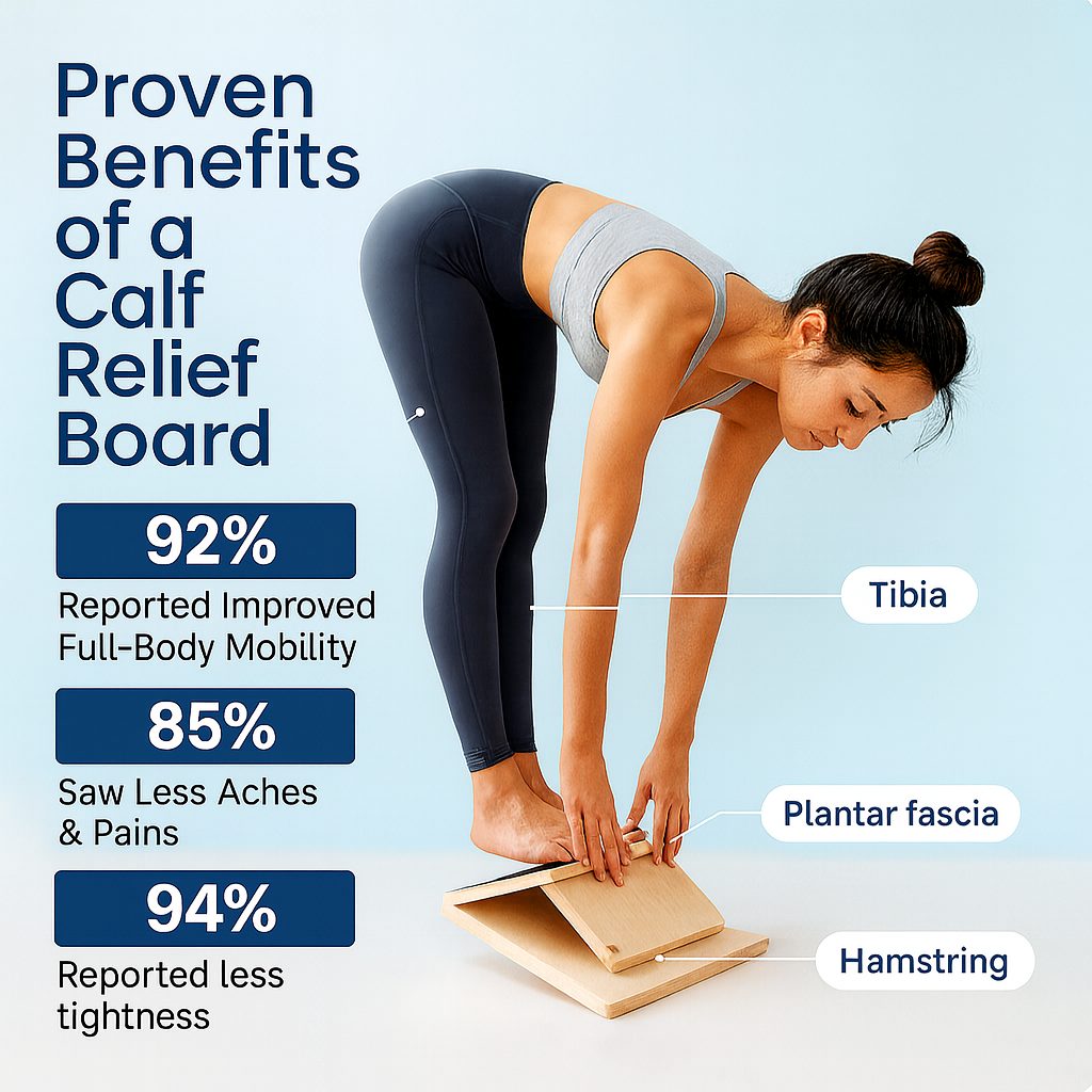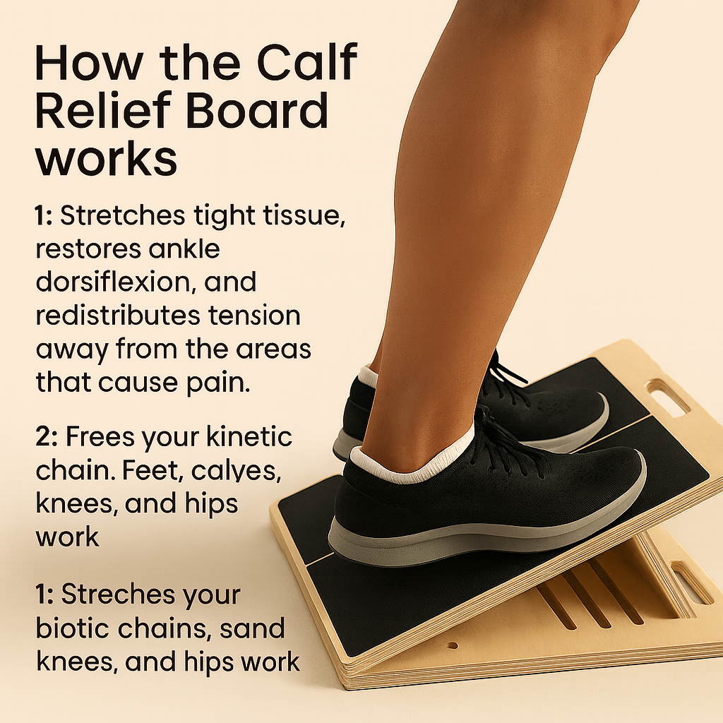 The Calf Stretching Board works by placing your feet at a gentle incline, which stretches tight muscles in your calves and ankles.