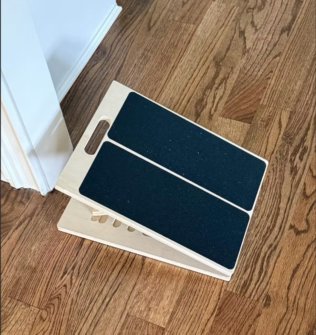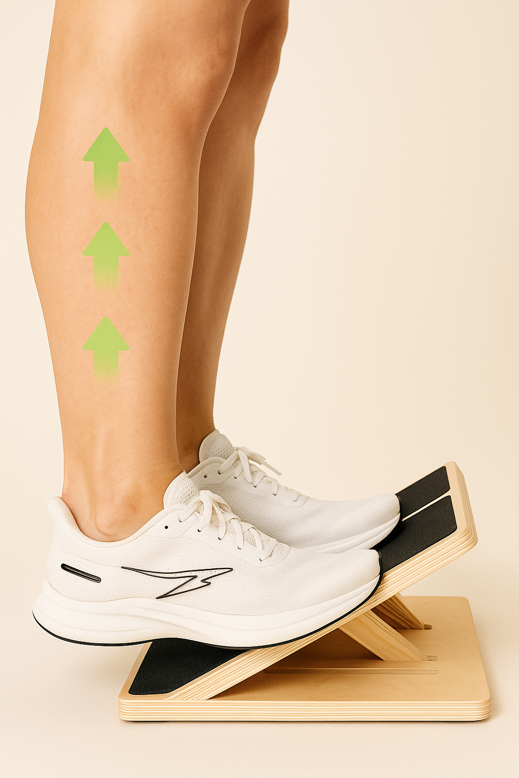 The Calf Stretching Board works by placing your feet at a gentle incline, which stretches tight muscles in your calves and ankles.